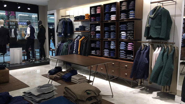 Our store concepts feature refined materials, tailored fixtures, and a clean, masculine design approach.